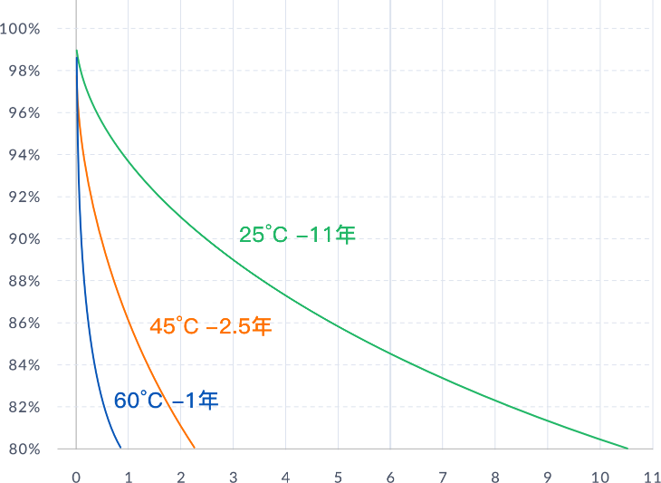 经电池头部企业验证:电池衰减与温度高度相关,低温液冷电池在夏季高温时可将电池工作温度恒定在25°C,减缓电池能量衰减速度,寿命可达11年。